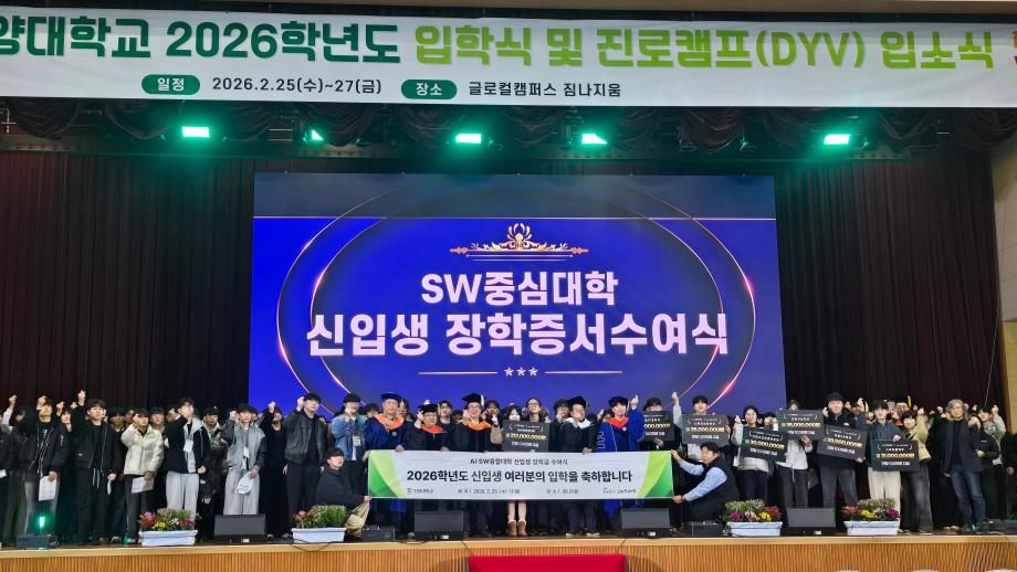 "신입생 전원 100만원 지원"... 건양대 SW중심대학사업단, AI인재 양성 본격 시동 건양대학교(총장 김용하) SW중심대학 사업단(단장 김용석)은 지난 25일 글로컬캠퍼스에서 2026학년도 SW중심대학사업 참여학과 및 학부 신입생 전원에게 1인당 100만원의 입학장학금을 지급하며 미래 AI·SW 인재 확보에 나섰다. 장학금은 총 212명의 신입생을 대상으로 하며, 총 2억1천2백만 원 규모로 지원된다. 이번 지원은 희영학술문화재단의 학술지원금으로 마련되어, 학생들이 입학 초기의 학습 준비 비용 부담을 덜고 안정적인 학업 환경을 조성하기 위한 목적을 가지고 있다. SW중심대학사업은 AI·SW융합대학소속 ▲인공지능학과 ▲스마트보안학과 ▲기업소프트웨어학부 ▲국방XR학부 ▲스마트팜학부와 의료공과계열의 ▲의료IT공학과 등 총 6개로 구성되어 있으며, 신입생 전원에게 장학 혜택을 제공함으로써 우수 인재의 조기 안착을 유도하고 있다. 대학은 이를 통해 AI·SW 핵심 인재로의 성장을 체계적으로 지원한다는 계획하고 있다. 학생들은 1학년부터 AI 기초 및 코딩 역량을 공통으로 이수하고, 이후 전공 특화 분야에 AI를 접목하는 교육을 받는다. 이러한 실전형 교육은 산업 현장의 실제 문제를 데이터 기반으로 정의하고 해결하는 데 중점을 두고 있다. 또한, ▲산업체와의 공동 캡스톤디자인 ▲기업 연계 인턴십 등 현장 밀착형 교육을 통해 졸업 전 실제 프로젝트 경험을 쌓을 수 있도록 하고 있다. 대학은 나아가 전교생 AI 리터러시 교육 확대를 통해 비전공자까지 AI 활용 역량을 갖춘 융합형 인재로 육성하는 ‘AI 기본 소양 의무화 체계’도 단계적으로 도입하고 있다. 이는 특정 학과 중심이 아닌, 대학 전체를 AI 기반 융합 생태계로 전환하기 위한 전략적 조치다. 김용석 단장은 “AI 중심 대학으로의 전환은 교육 철학과 운영 체계를 근본적으로 혁신하는 과정”이라며, “신입생 전원 장학 지원은 우수 인재 확보를 위한 전략적 투자”라고 강조했다. 그는 또한 “대학 전체가 AI 기반 교육체계로 전환될 수 있도록 지속적인 제도 개선과 재정 투자를 이어가겠다”고 덧붙였다.