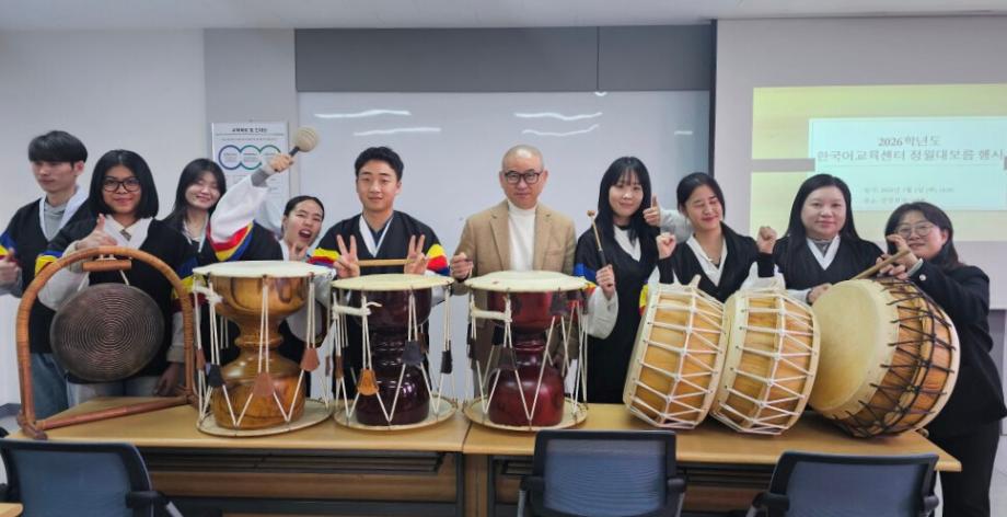 외국인 유학생과 함께한 건양대, 정월대보름 전통 놀이와 대학 생활 한국어 오리엔테이션 건양대학교(총장 김용하)는 3월 3일 글로컬캠퍼스 건양회관에서 외국인 유학생을 대상으로 정월대보름을 맞아 사물놀이 체험 행사를 개최했다. 중국, 태국, 미얀마, 키르기스스탄 국적 유학생 10여 명이 참여해 전문가 지도 아래 세마치, 중중모리, 굿거리, 자진모리 등 다양한 전통 장단에 맞춰 꽹과리, 북, 징, 장구 등 전통악기를 직접 연주하며 한국의 전통문화를 몸소 체험했다. 키르기스스탄 출신 메림굴 씨(사이버보안학과 3학년)는 “설날과 추석 같은 명절마다 대학이 준비한 전통문화 체험 기회를 통해 한국 문화를 깊이 배울 수 있어 매우 뜻깊었다.”고 전했다. 이걸재 대외협력처장은 “앞으로도 외국인 유학생과 한국 학생이 함께 참여하는 다양한 민속문화 체험 및 문화교류 프로그램을 확대할 계획이다.”고 밝혔다. 한편, K-문화산업학과(학과장 강란숙)는 2026학년도 1학기 신입생을 대상으로 별도 시기에 ‘노래로 배우는 대학 생활 한국어’ 오리엔테이션을 진행했다. 신입생들은 노래 가사로 만들어진 쉬운 한국어 표현을 따라 부르며 자연스럽게 한국어를 익혔다. 또한 도서관, 체육관 등 교내 주요 시설 견학과 맞춤형 한국어 수업을 통해 대학 생활에 필요한 의사소통 능력을 집중적으로 강화했다. 특히 선배 재학생이 후배 신입생들과 함께 학습하며 긴밀한 교류와 유대감을 형성하는 시간도 마련됐다. 이번 두 행사는 유학생들의 한국 문화 이해와 학업 적응을 돕고 학생 중심 교육을 실천하는 건양대학교의 대표적인 사례로, 대학은 앞으로도 다양한 문화 교류 및 교육 프로그램을 지속해서 확대할 계획이다.